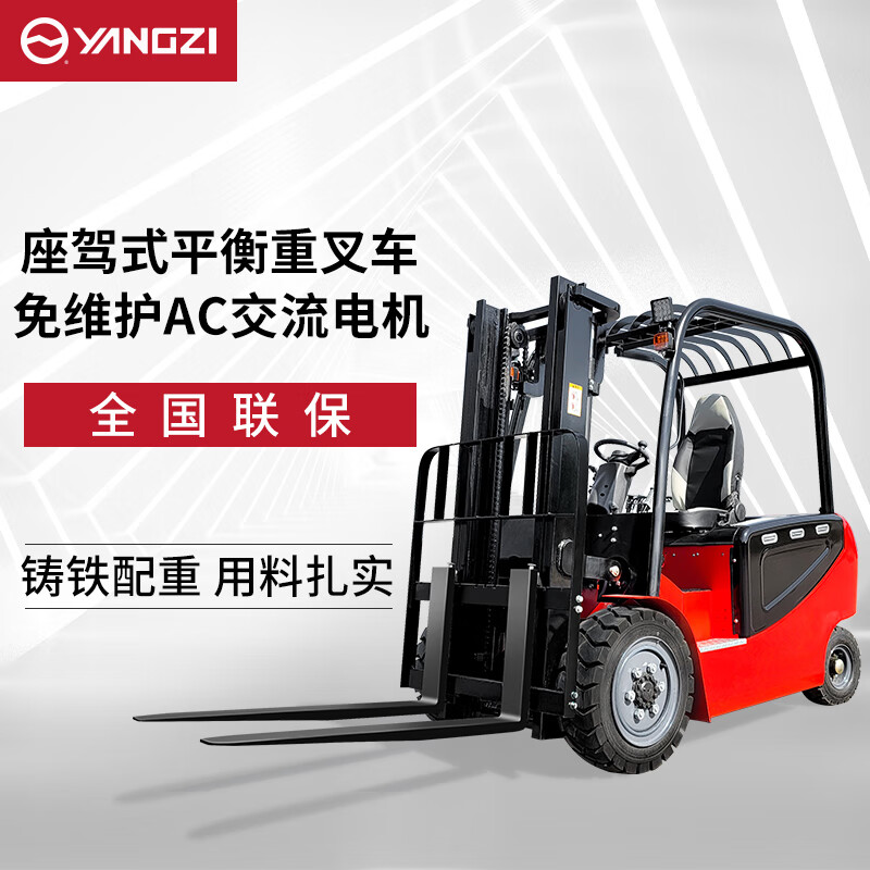 揚子電動叉車2噸升高3米四輪座駕式CPD20-30C平衡重叉車,整車高效免維護AC電機,鑄鐵配重