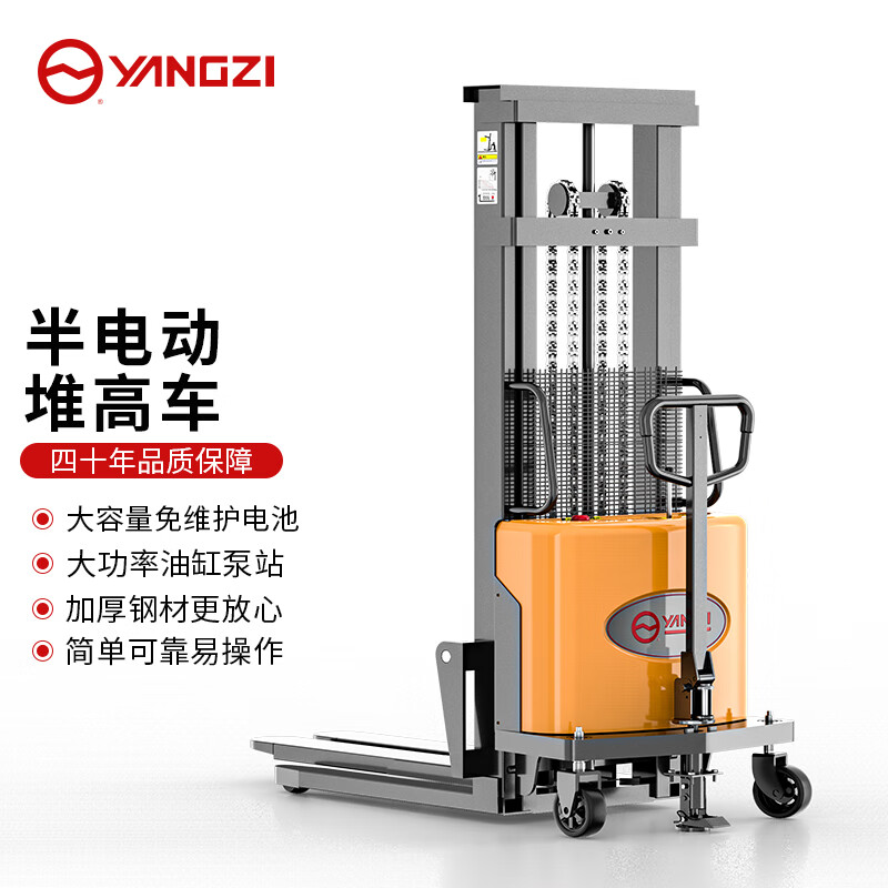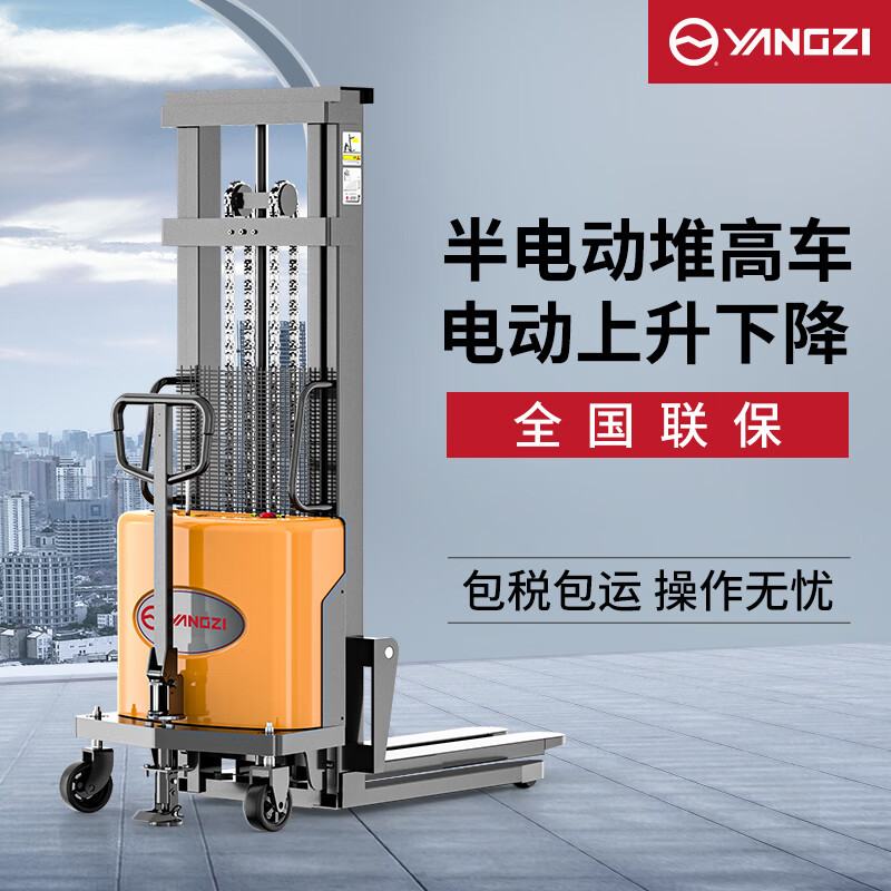 揚子電動叉車YZ-B1016半自動堆高車1噸升高1.6米,安全剎車功能卸貨更方便