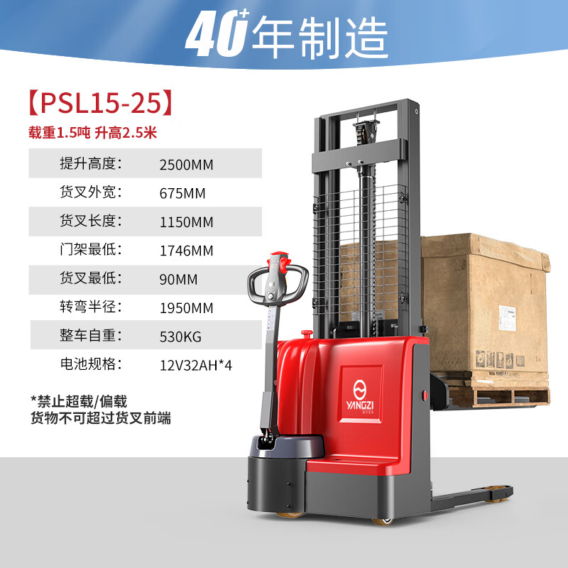 揚(yáng)子步行式全電動堆高車PSL1525-1.5噸升高2.5米,加強(qiáng)型油缸,全新技術(shù)升級,快速提升油缸,提升速度快而有力
